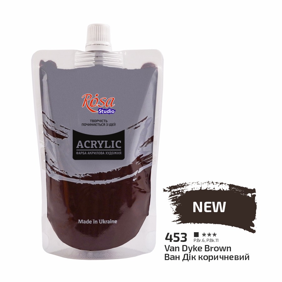 АКРИЛ для декору “ROSA Studio” /453/ Ван Дік коричневий, 200мл (1/6)
