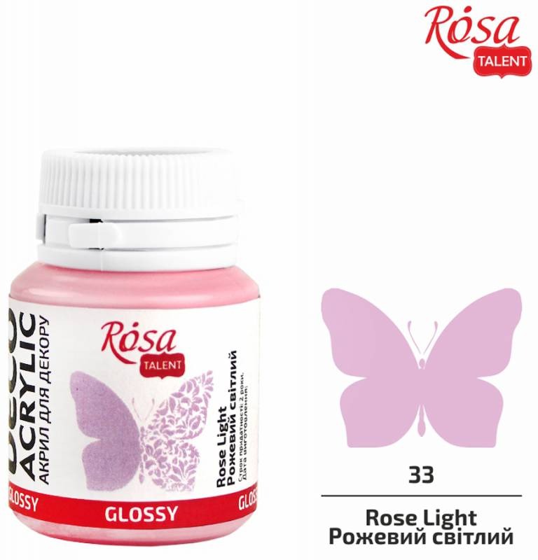 АКРИЛ для декору “ROSA TALENT” /33/ Рожевий світлий, глянцевий, 20 мл (1/140)