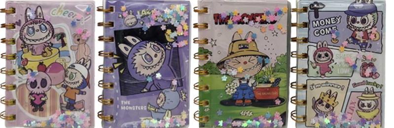 Блокнот 7,5*10,5см/80арк. /BC-203/ на спіралі “Плаваючі блискітки – Лабубу Labubu”