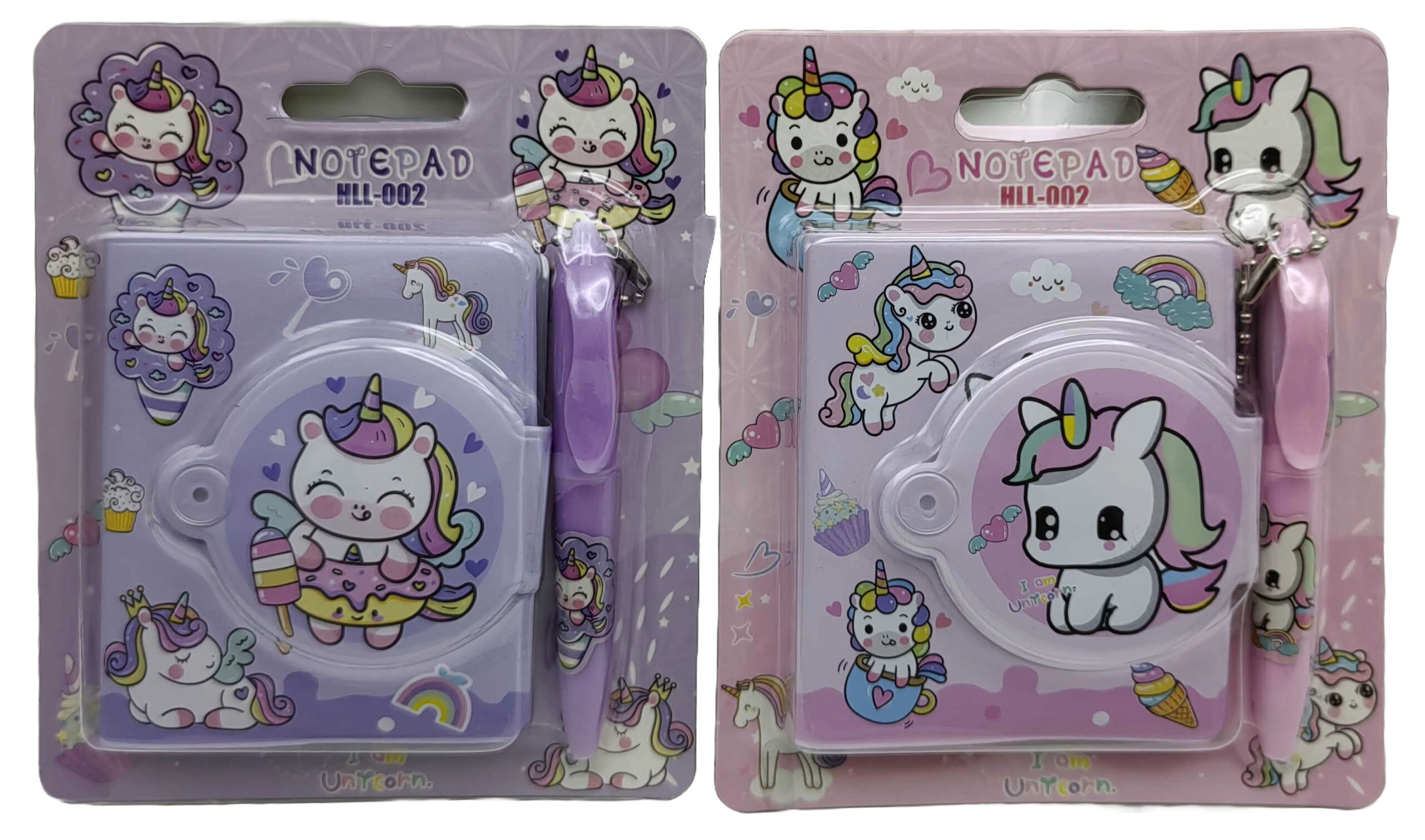 Блокнот 8*7см/65арк. /НLL-002-PA/ на кнопці,ручка-брелок “Єдиноріг” (1/24)