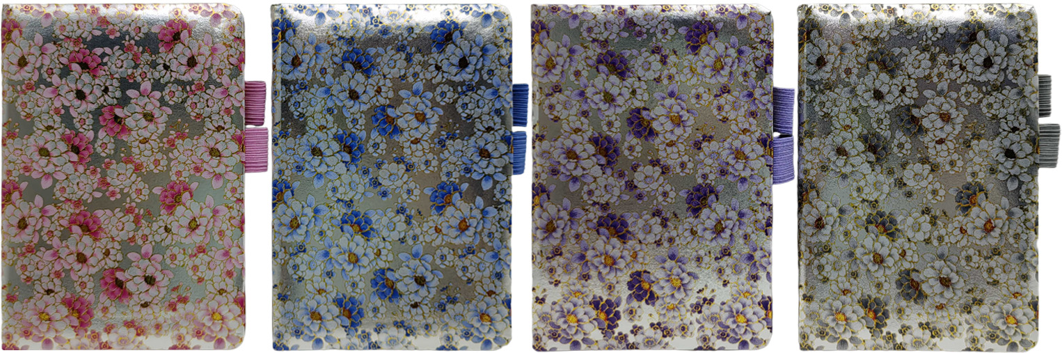 Блокнот А6/80арк. /6500-37/ # утримувач д/ручки шкір/зам , “Квіти на сріблі” кольор.край 80г/м2 (1/24)