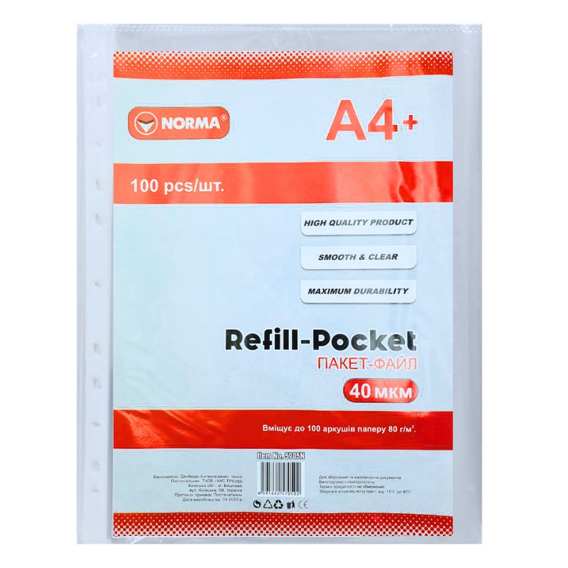 Файл гл. А4 40мкм. “NORMA” /5705/ 100шт. (1/20)