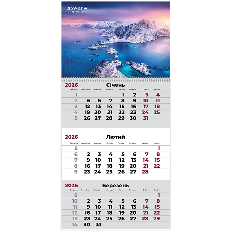 Календар “Axent” кварт. 1 пруж 2026р /8801-26-7-A/ настінний “Nature 1” (1/10)