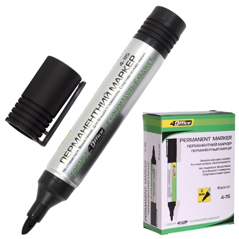 Маркер “4OFFICE” /4-115/ перманент., 1-3 мм ЧОРНИЙ (10/240/720)