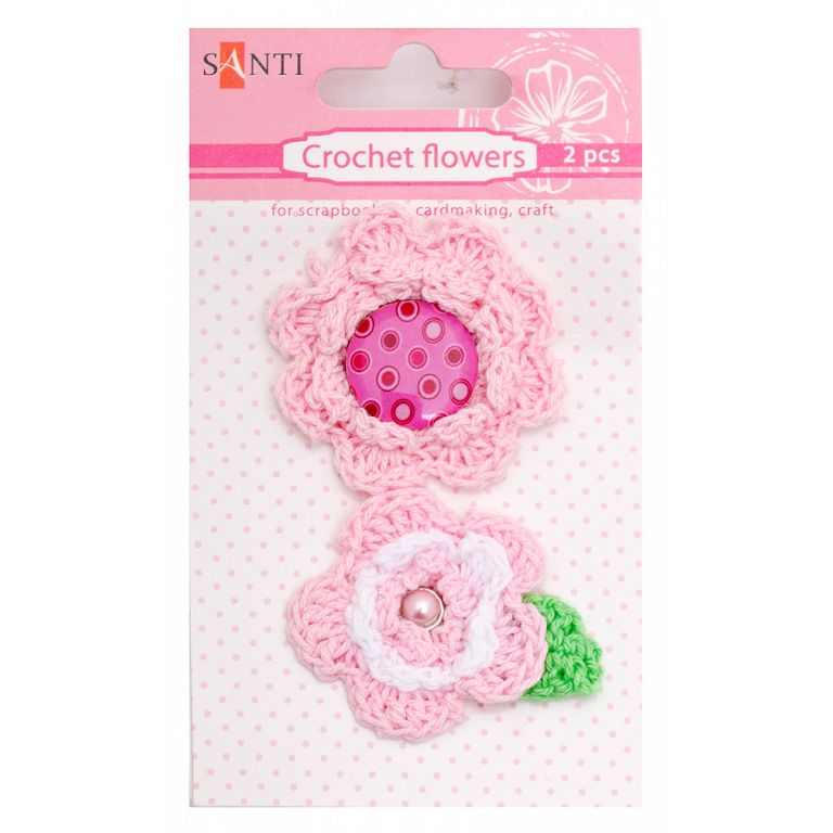 Набір брадс “Santi” /952617/ квіти в’язані рожеві, 2 шт (1/750)