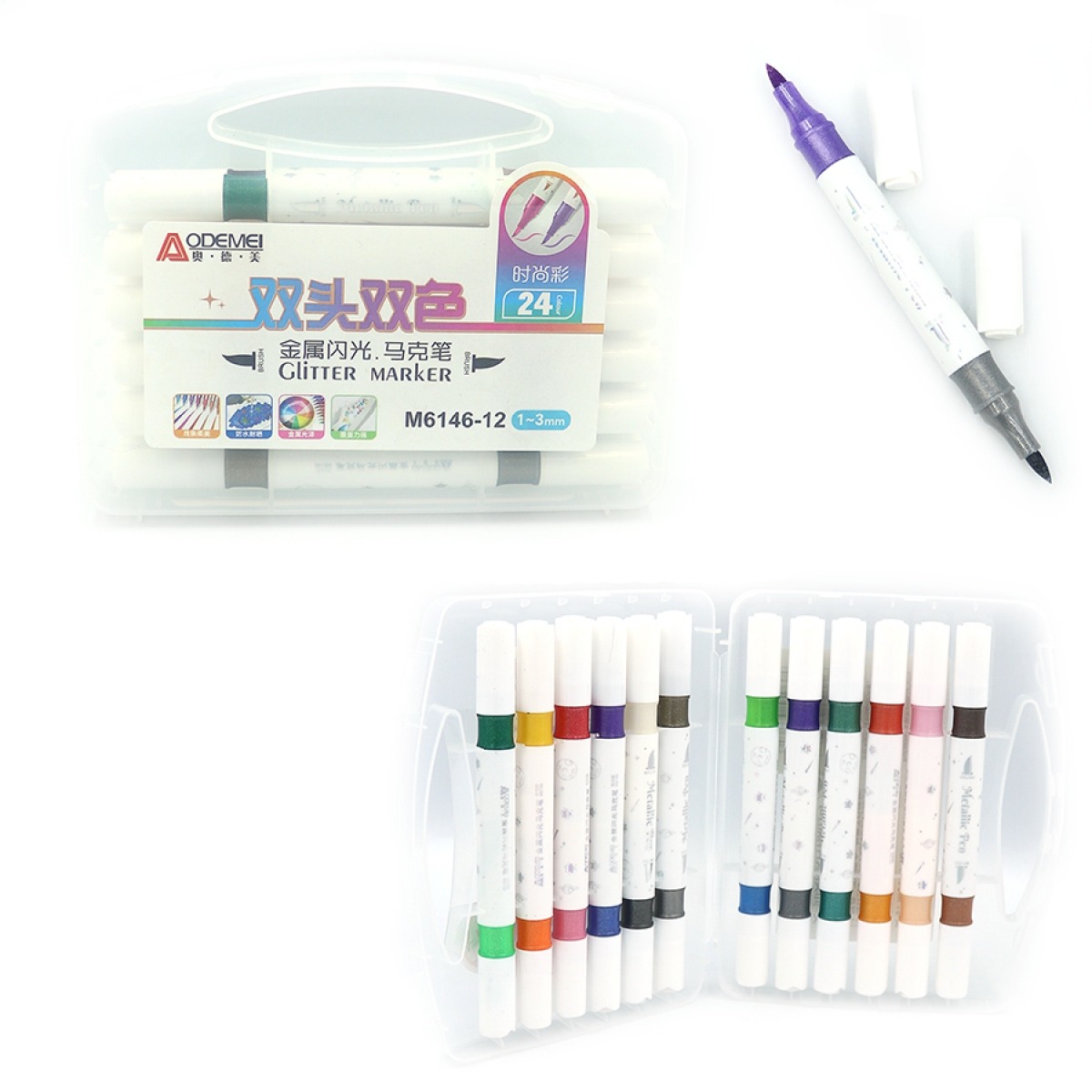 Набір скетч маркерів 24кол/12шт. “AODEMEI” /M6146-12/ ДВОСТОРОННІ “Глітер” (1/24)