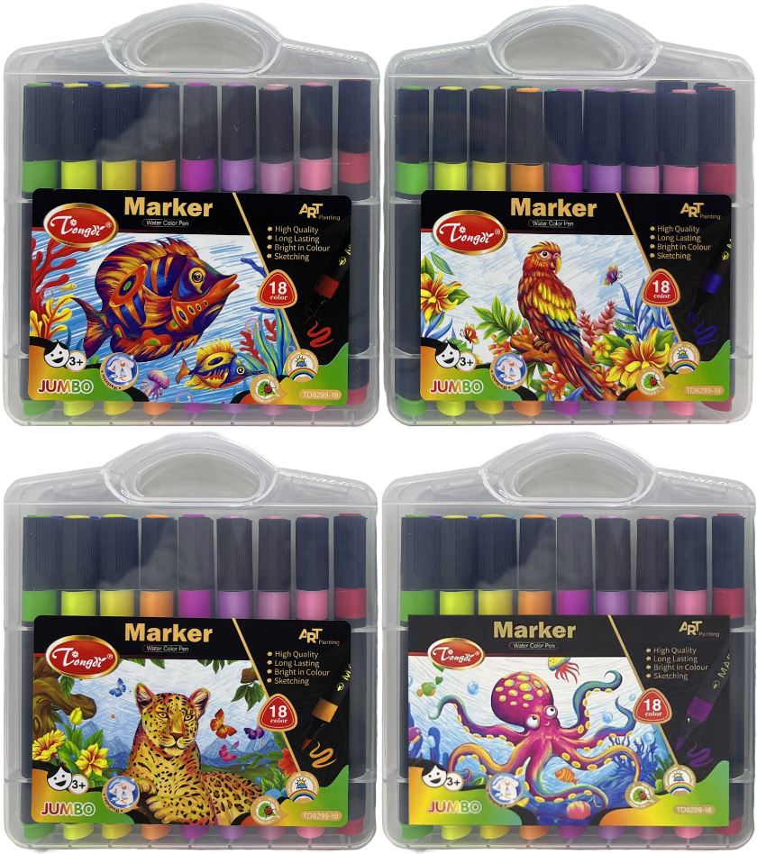 Набір скетч маркерів /8299-18/ 18 кол. тригранний “Тваринний світ” у пластиковій коробці (1/24/72)