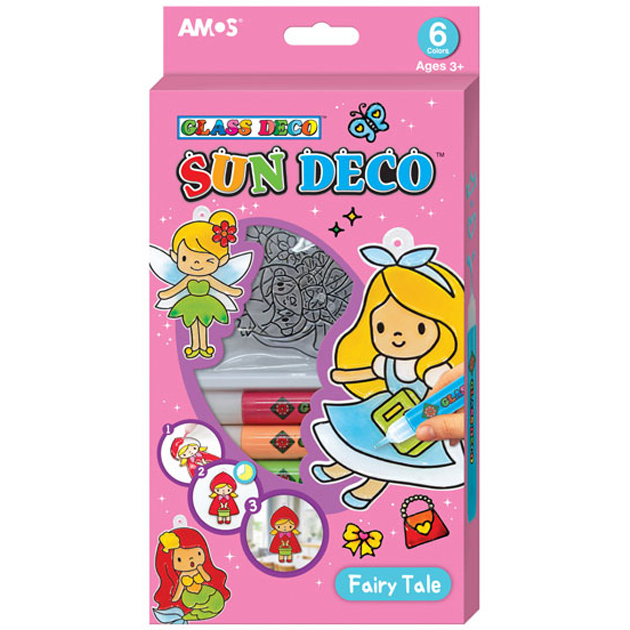 Будьте першим, хто залишив відгук “Набір вітражних фарб “Amos” /SD10P6-F/ Sun Deco “Казка” 6кол.*10,5 мл+6 брелків (1/12)”“