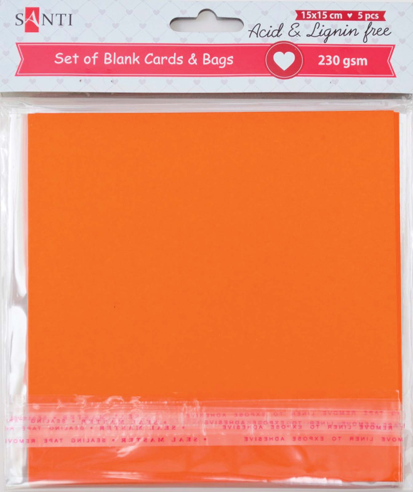 Набір заготовок для листівок “SANTI” /952284/ 15*15 см 5шт.,оранж.,230г/м2 (1/100)