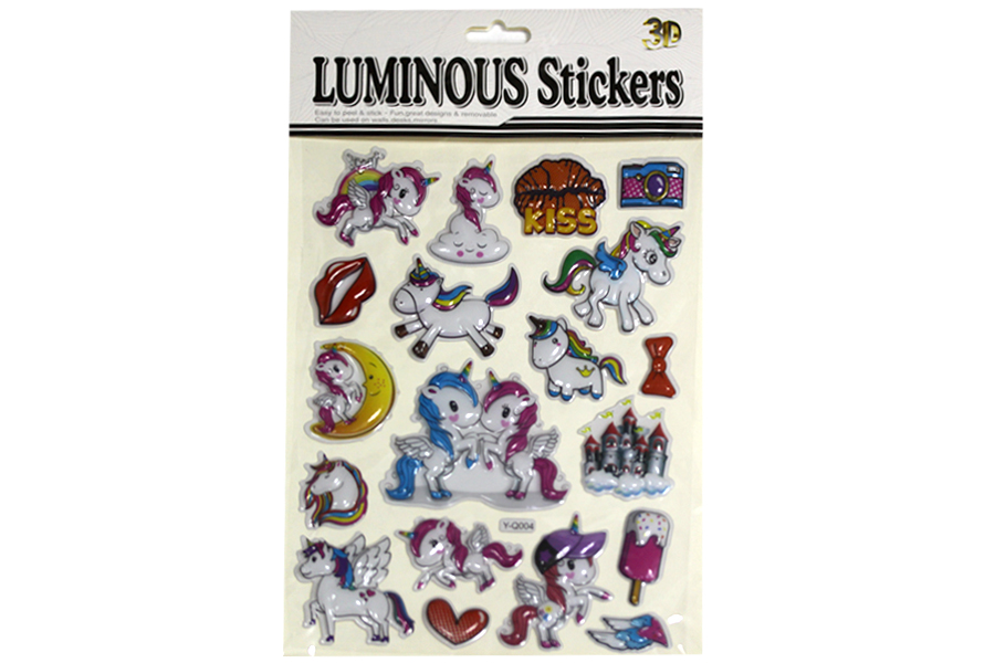 Наліпка пластикова рельєфна флуорісцентна /Y-Q004/ 10*30см “Єдиноріг” (12)