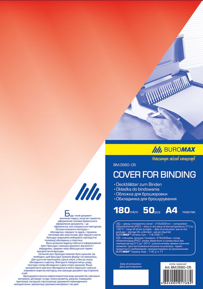 Обкладинка для брошурування “BuroMAX” /BM.0560-05/ А4, 180мкм, ЧЕРВОНА (50/1000)
