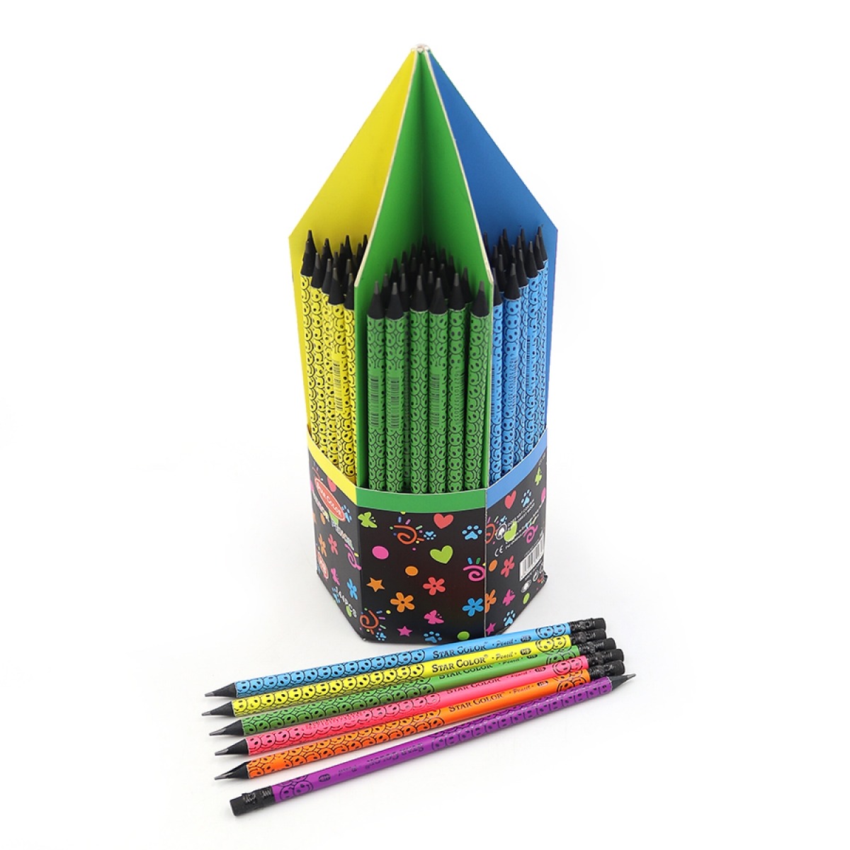 Олівець ч/г “JO” /DSCN0689/ HB Star color “Smile” з гумкою, карт. стійка (144/2880)