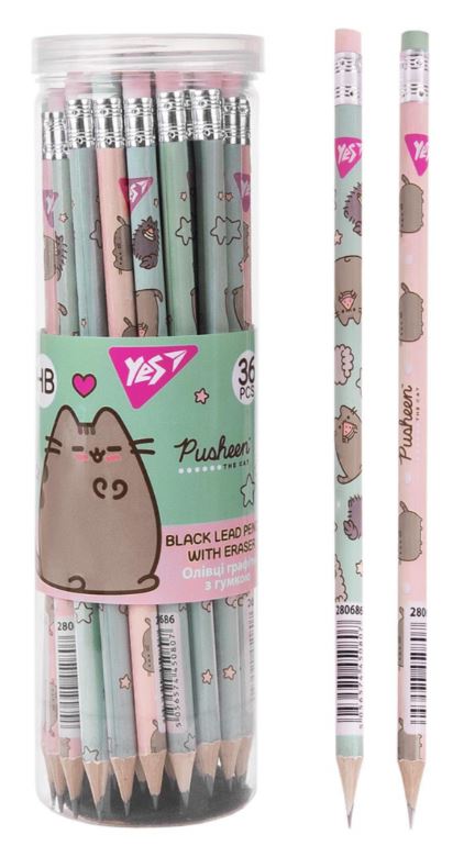 Олівець пр.”Yes” /280686/ “Pusheen” круглий з гумкою 36шт/туба (36/540/2160)