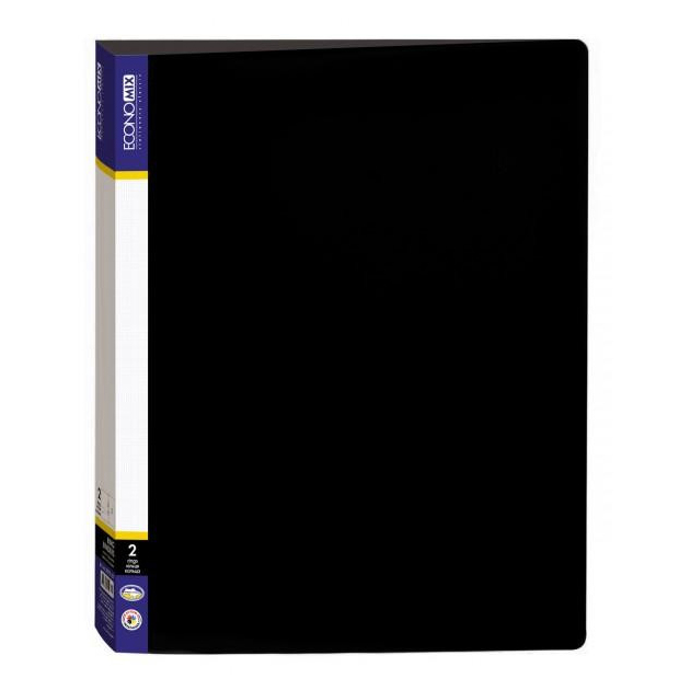 Папка А4 2 кільця “Economix” /E 30701-01/ +2 карм., плівка, чорна (1/10)