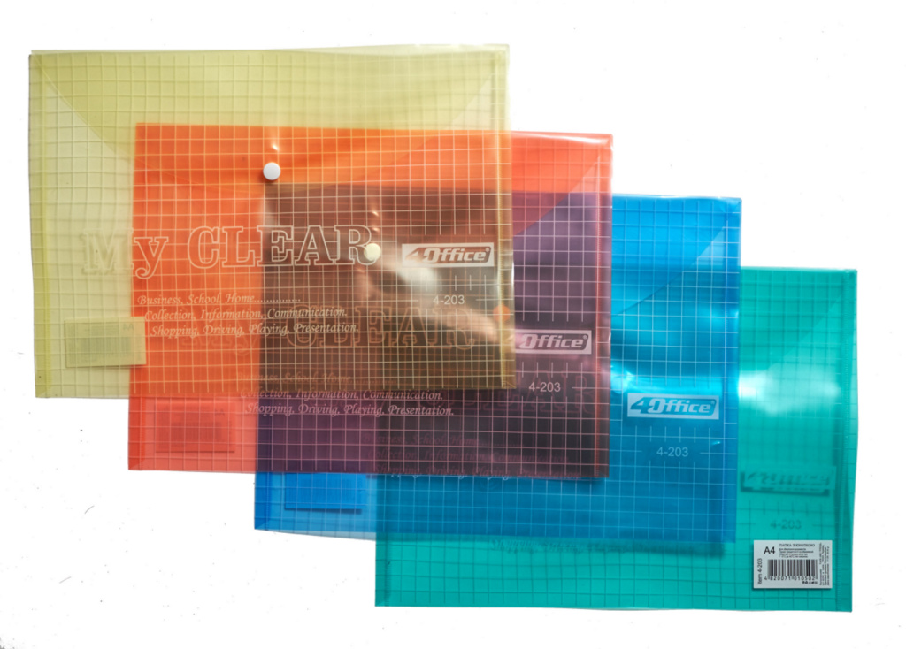 Папка-конверт на кнопці А4 “4OFFICE” /4-203/ прозор. (12/300)