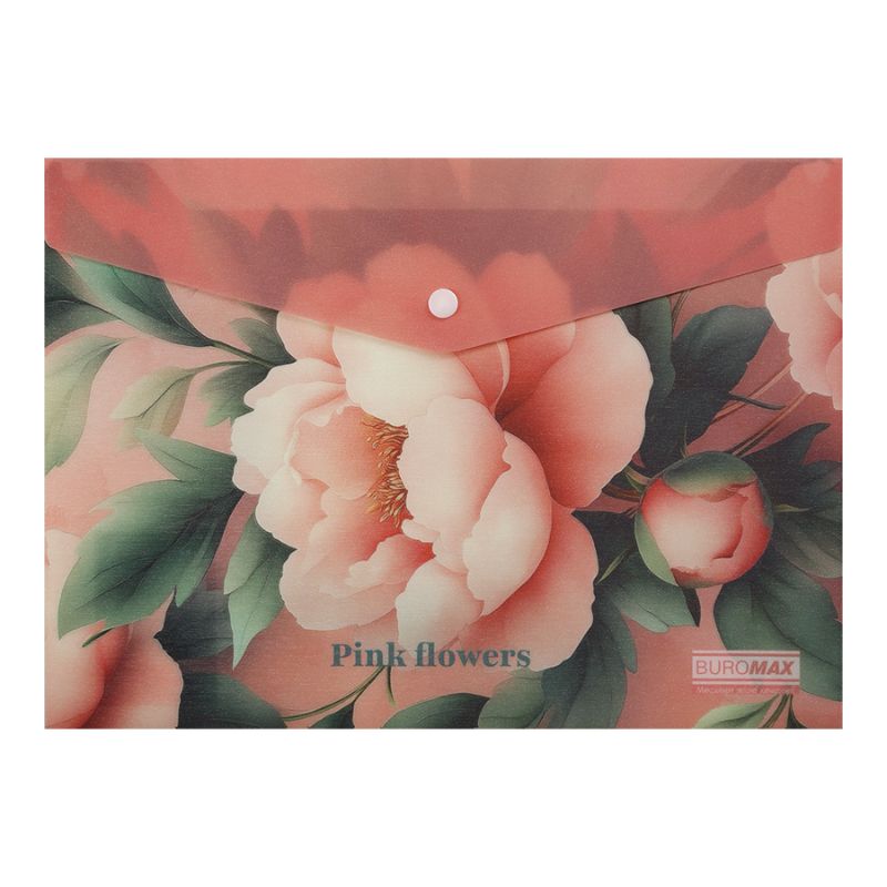 Папка-конверт на кнопці А4 “BuroMAX” /BM.3943-10/ матов.пластик, ARABESKI, рожевий (12/360)