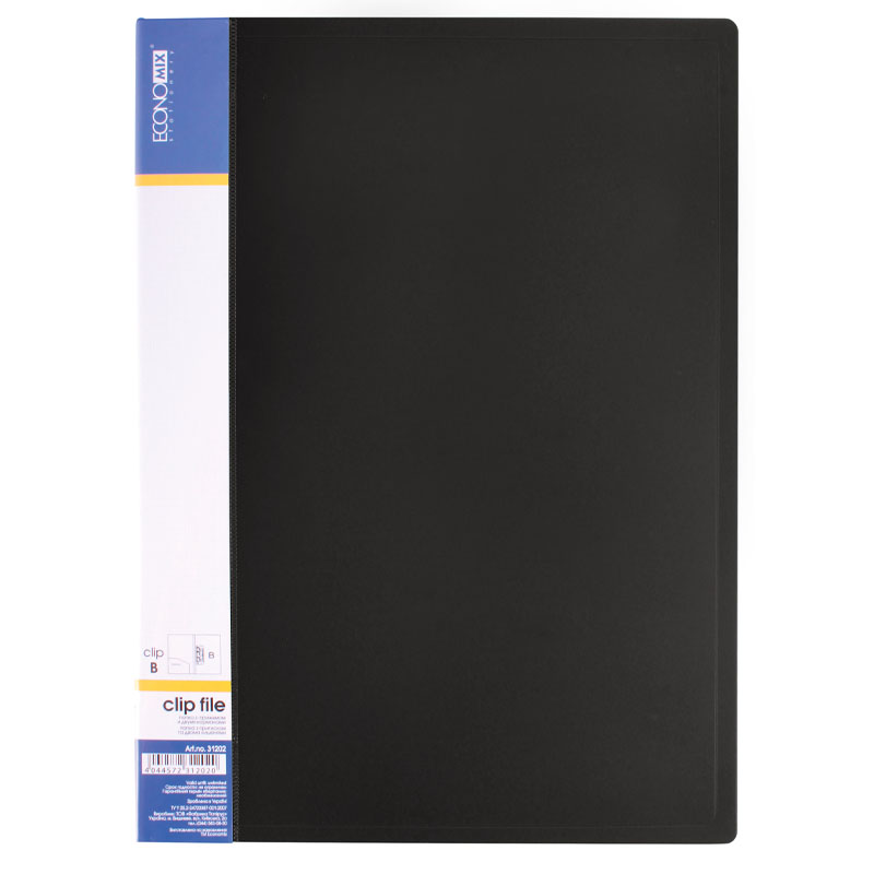 Папка з притиском “ECONOMIX” /Е31202-01/ СLIP B +2кишені. чорна (20/120)