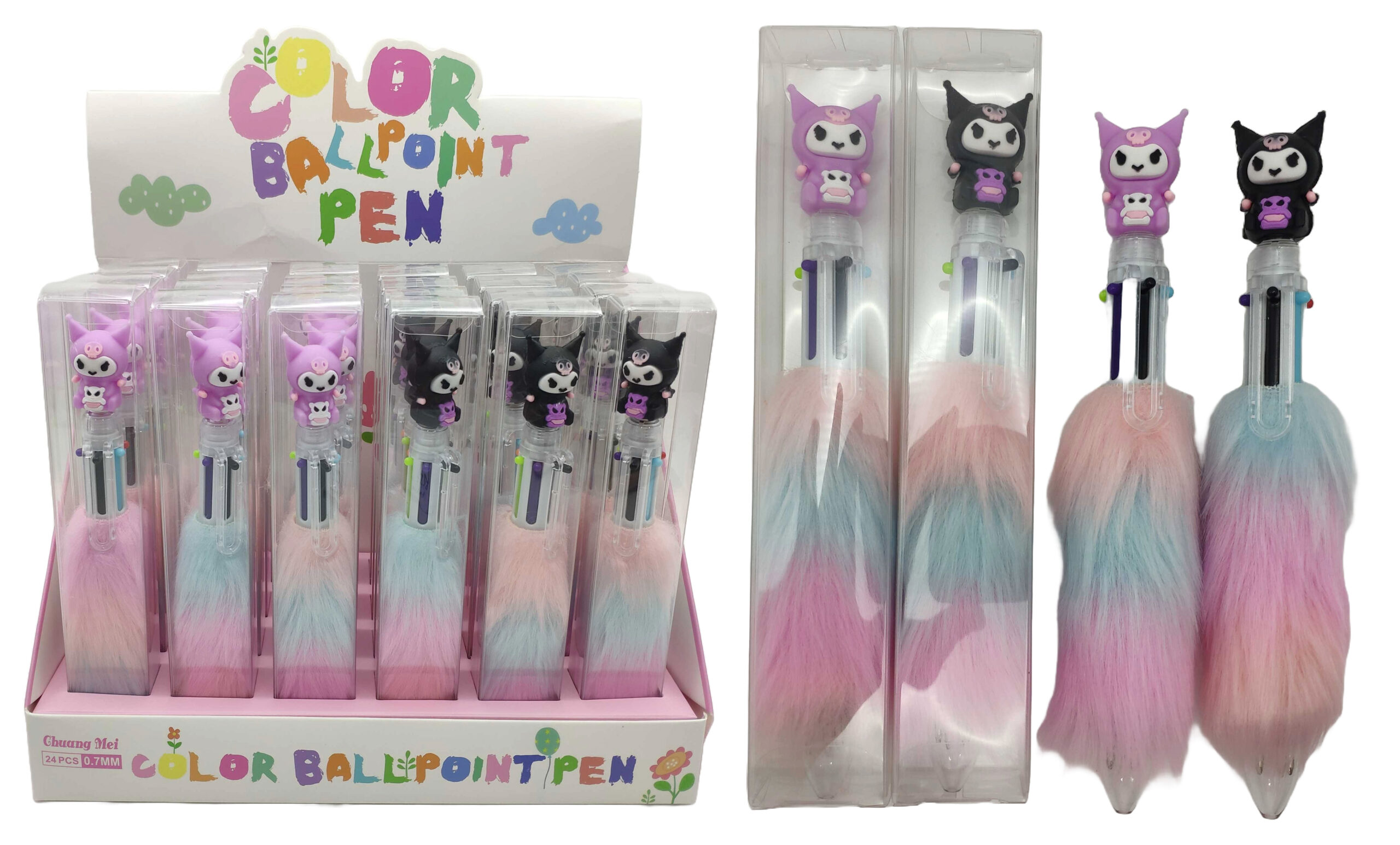 Ручка кулькова /7529/ 6-кольорова хутро “Зайчик-Kuromi Куромі” (24)