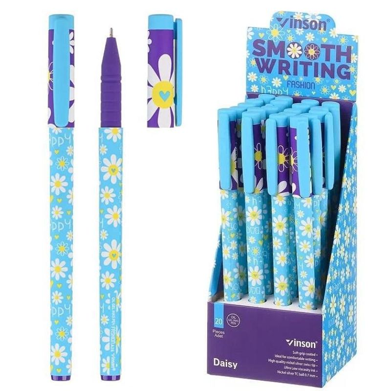 Ручка масляна “Vinson” /A26/ “Daisy” 0,7мм, синя (20)
