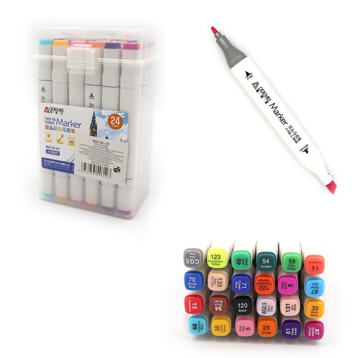 Скетч Маркер двосторонній “AODEMEI” /M6138-24/ 24кол. квадратн. корп., спиртова основа, PP BOX (1/40)