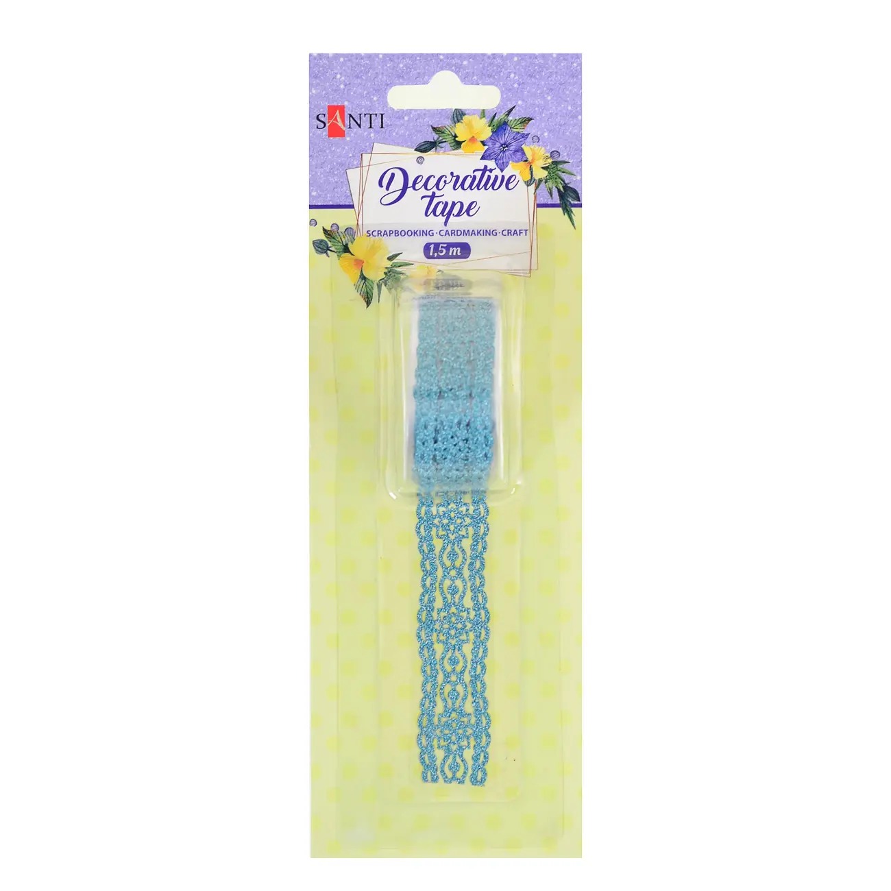 Скотч декоративний фігурний “SANTI” /742256/ блискучий, “Мереживо”, блакитна, 1,5 м (1/20/200)