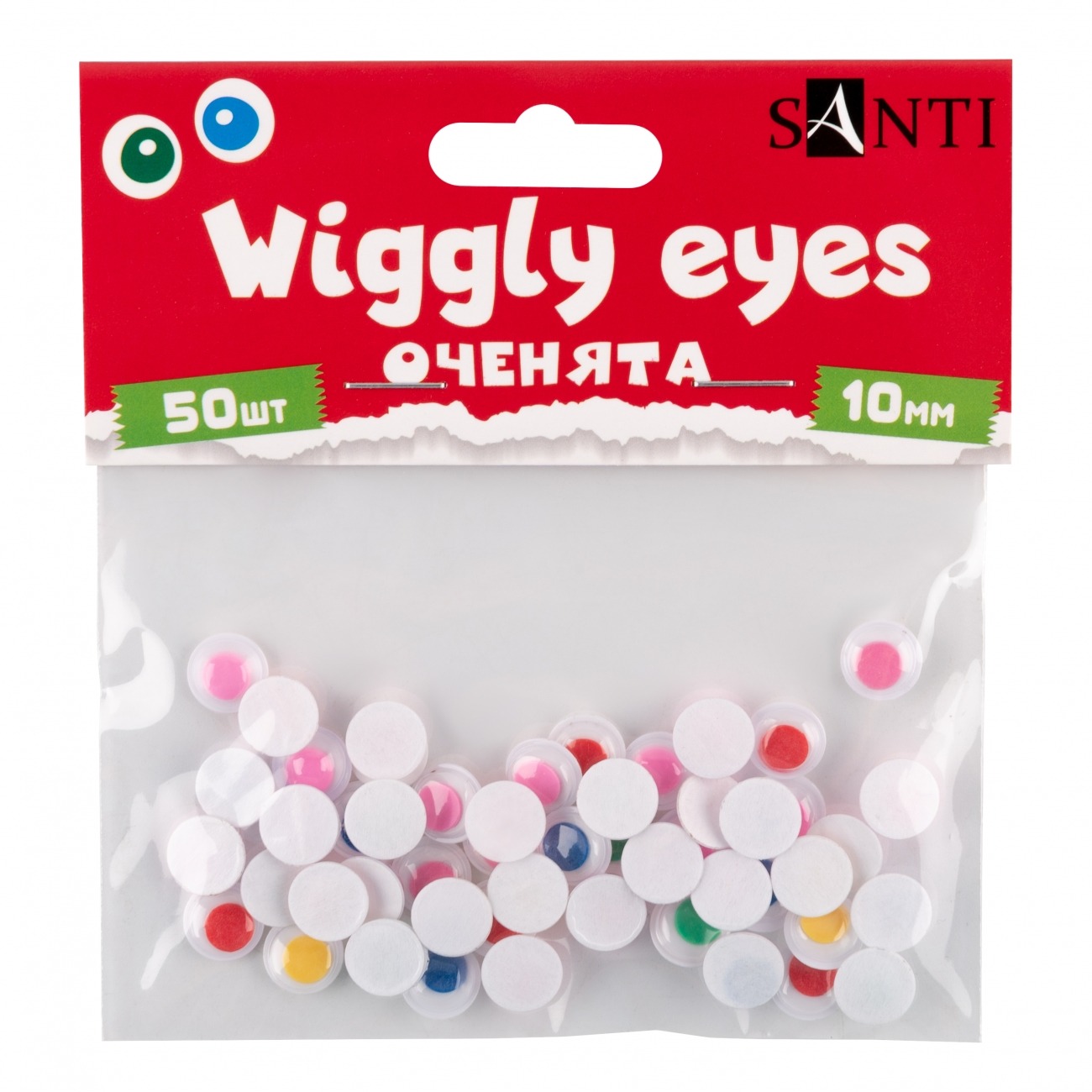 Стікер для творчості “Santi” /954641/ “Оченята” самоклеючі, кольорові, d-10мм, 50шт/уп (1/12/288)