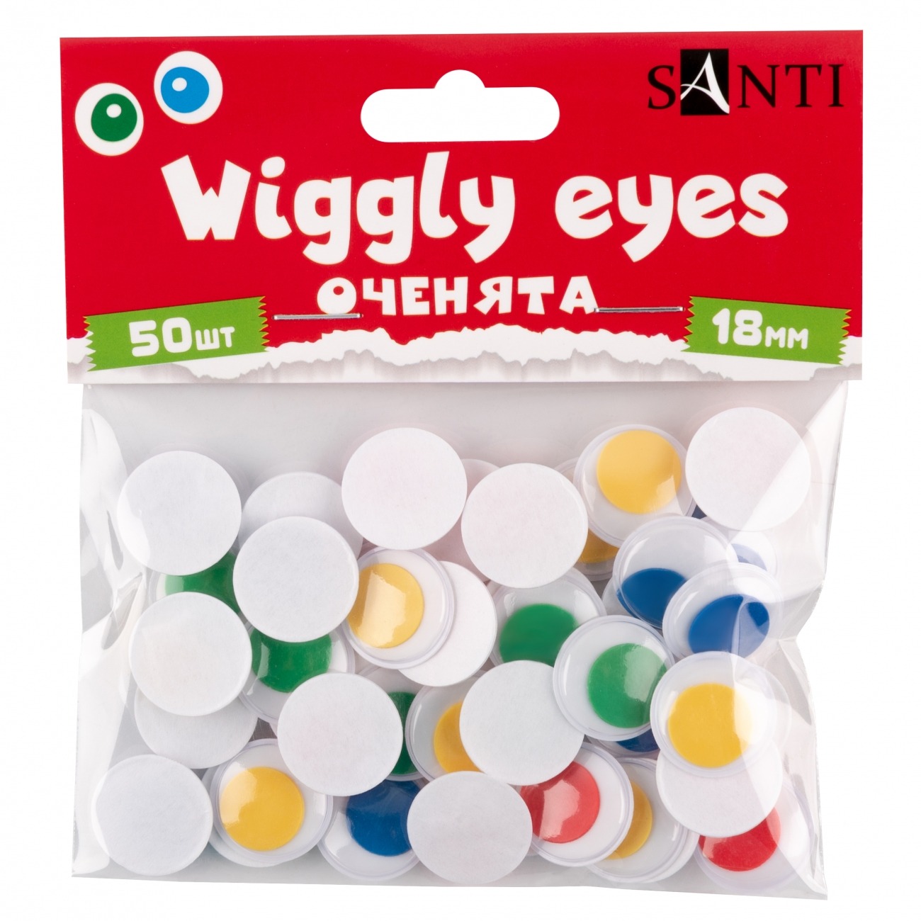 Стікер для творчості “Santi” /954644/ “Оченята” самоклеючі, кольорові, d-18мм, 50шт/уп (1/12/288)